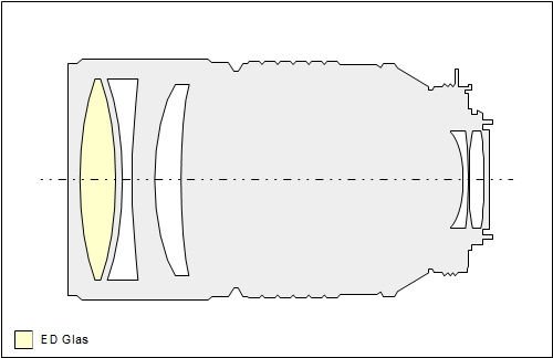 | Optischer Aufbau | 5 Linsen in 5 Gruppen |