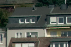 Die Ergebnisse sind allerdings mit Vorsicht zu genießen, da die gezeigten Häuser in der Ecke nicht in der selben Ebene wie der Turm, auf den fokussiert wurde, liegen. Aber ich hoffe, dass bei einer Entfernung von mehreren Kilometern dieser Fehler eine nicht so große Rolle spielt.